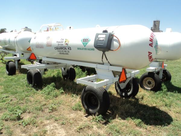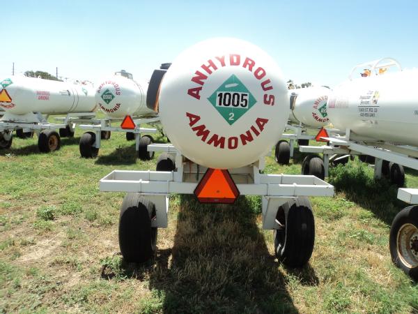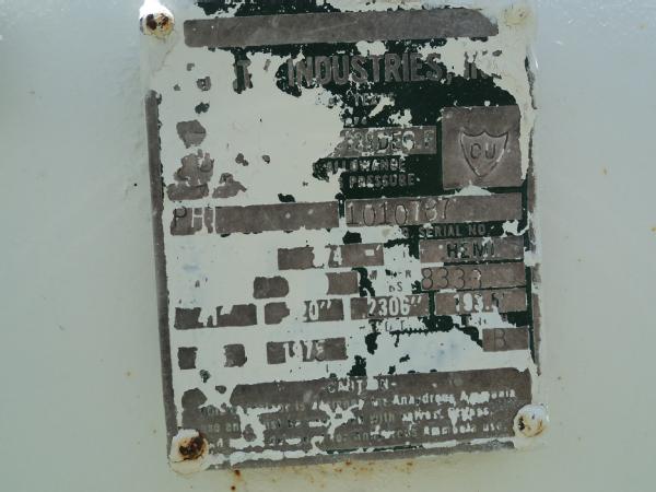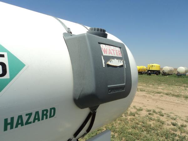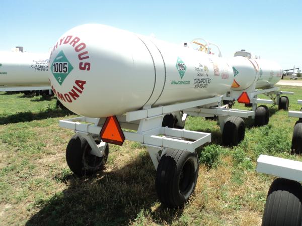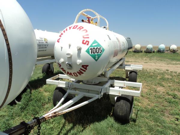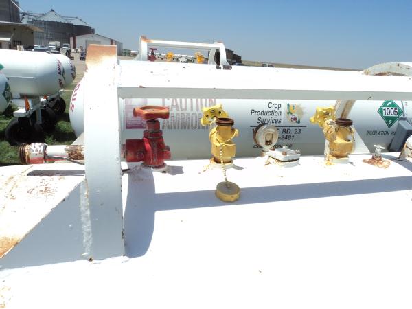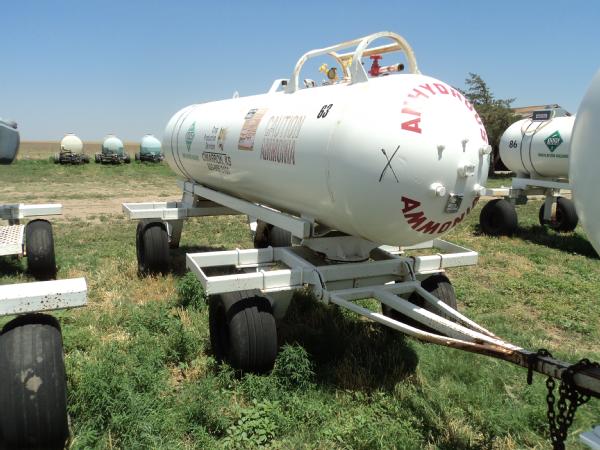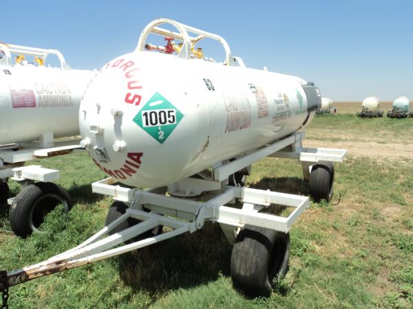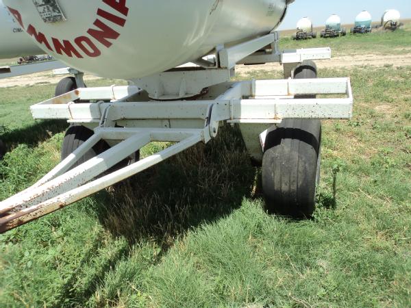 1975 Trinity Industries, Inc. 1,000 gallon anhydrous nurse tank (Unit 63), top front fill, 4 wheel running gear, 11L-15SL flotation tires, data plate.