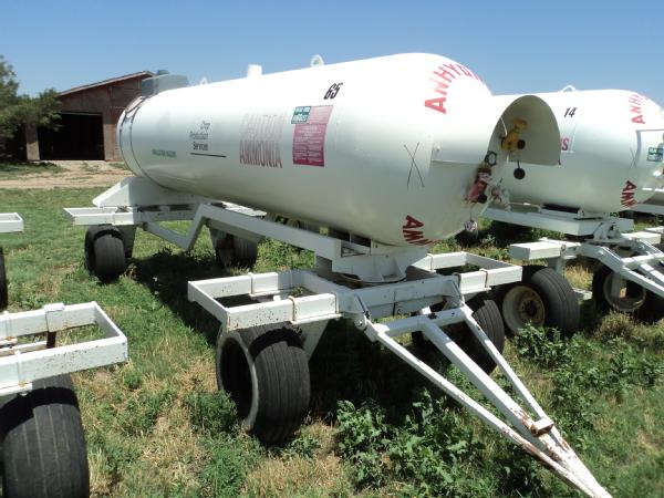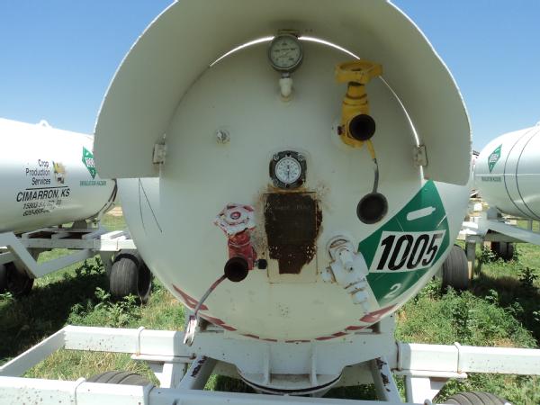 1968 SEMCO 1,000 gallon anhydrous nurse tank (Unit 65), front fill, 4 wheel running gear, 11L-15SL flotation tires, data plate.