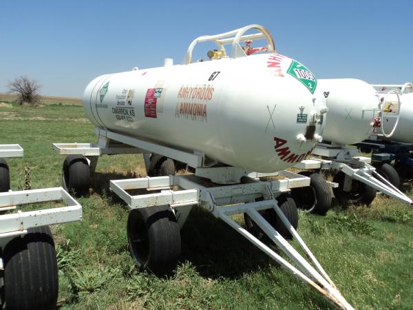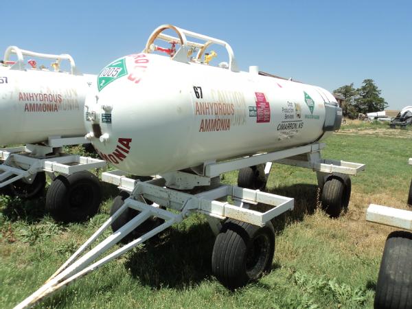 1966 SEMCO 1,000 gallon anhydrous nurse tank (Unit 67), top front fill, 4 wheel running gear, 11L-15 flotation tires, data plate.
