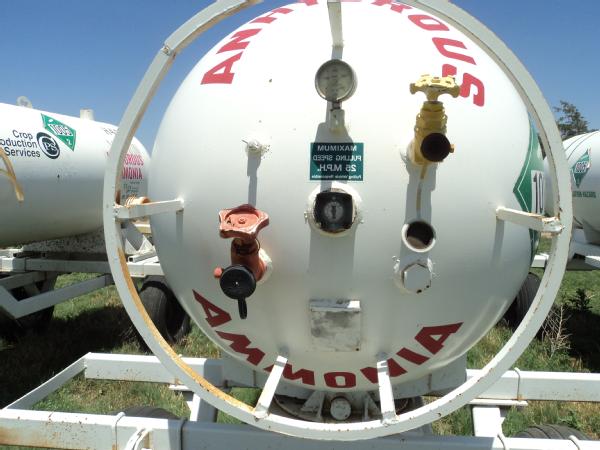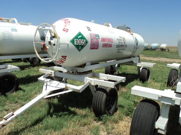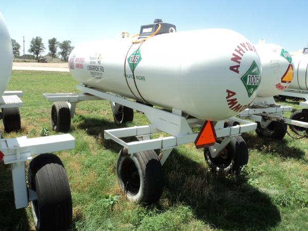 1,000 gallon anhydrous nurse tank (Unit 72), front fill, 4 wheel running gear, 11L-15 flotation tires, data plate.