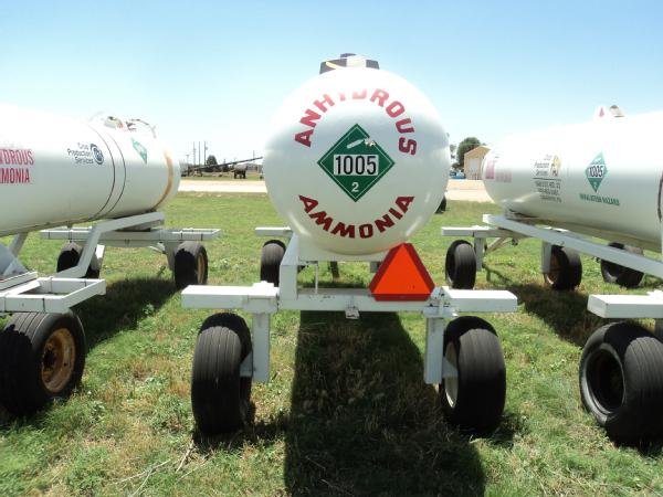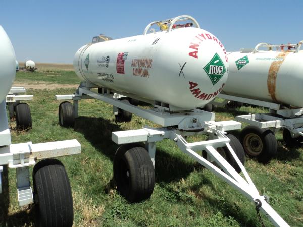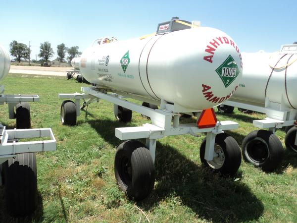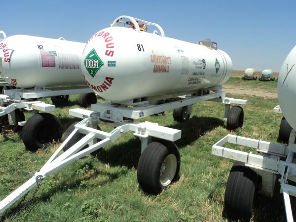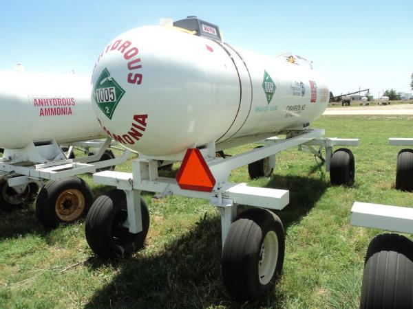 1,000 gallon anhydrous nurse tank (Unit 81), top front fill, DUO LIFT 4 wheel running gear, 11L-15 flotation tires, data plate.