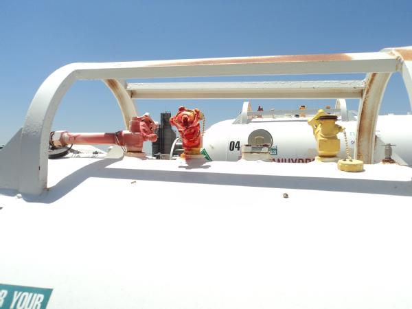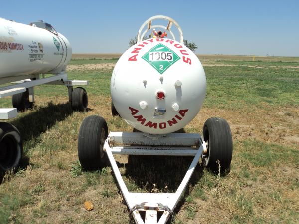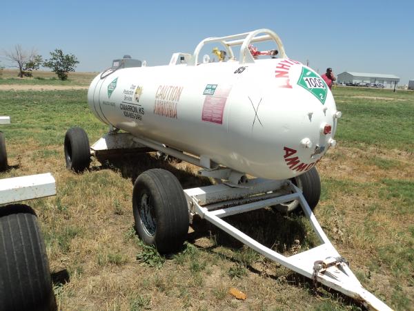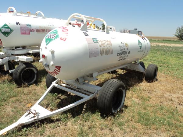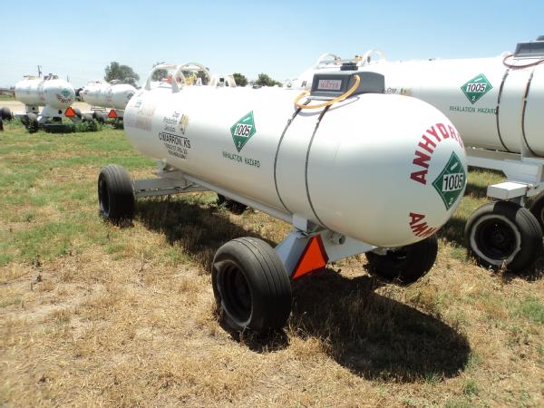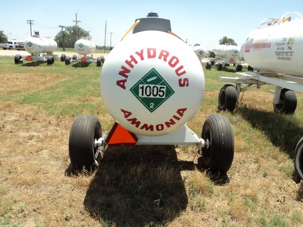 Trinity Industries, Inc. 1,000 gallon anhydrous nurse tank (Unit 85), top front fill, 4 wheel running gear, 11L-15 flotation tires, data plate.