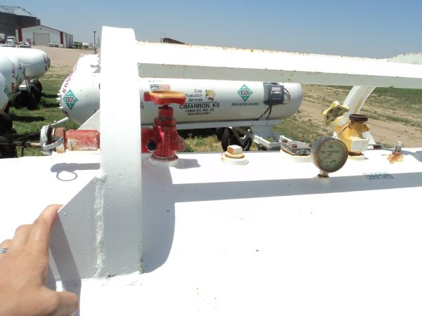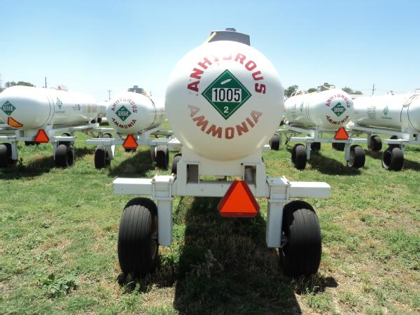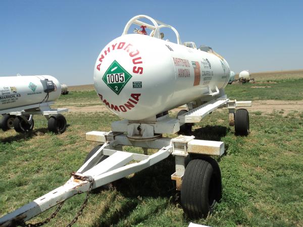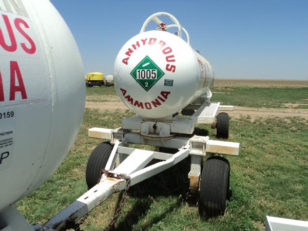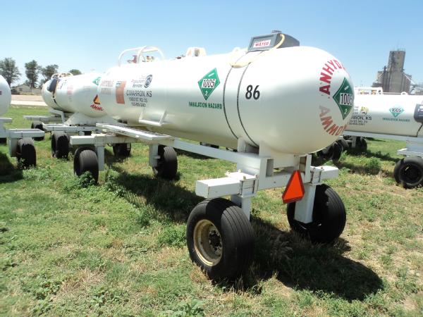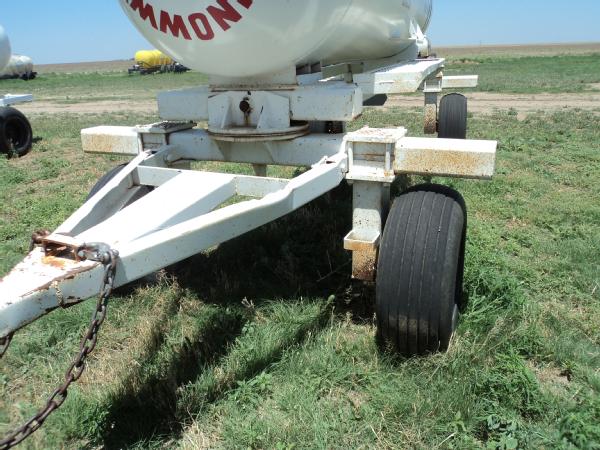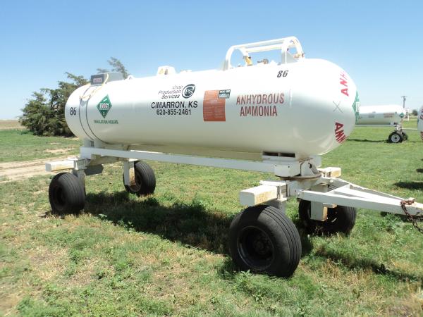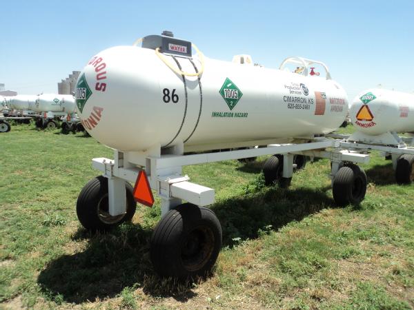 1,000 gallon anhydrous nurse tank (Unit 86), top front fill, 4 wheel running gear, 11L-15 flotation tires, data plate.