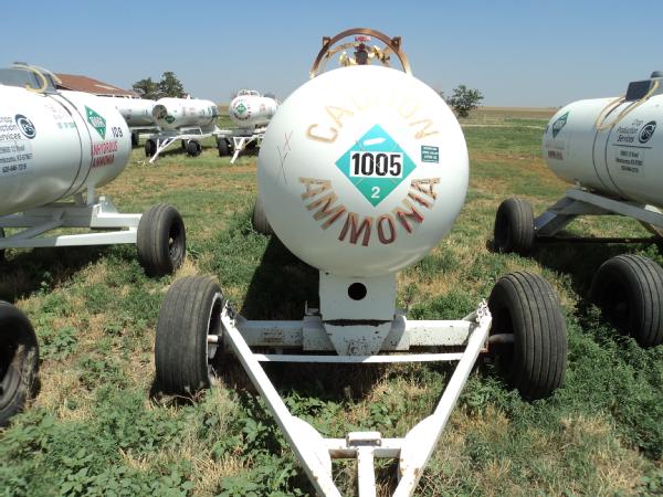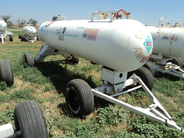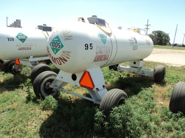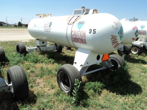 1,000 gallon anhydrous nurse tank (Unit 95), top front fill, 4 wheel running gear, 11L-15SL flotation tires, data plate.
