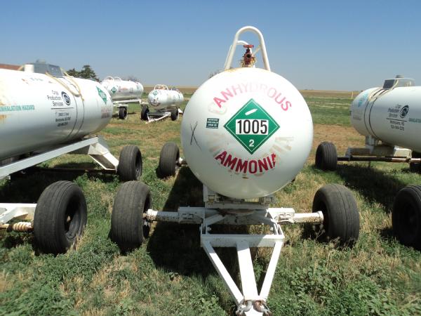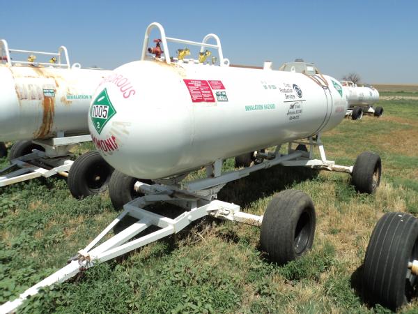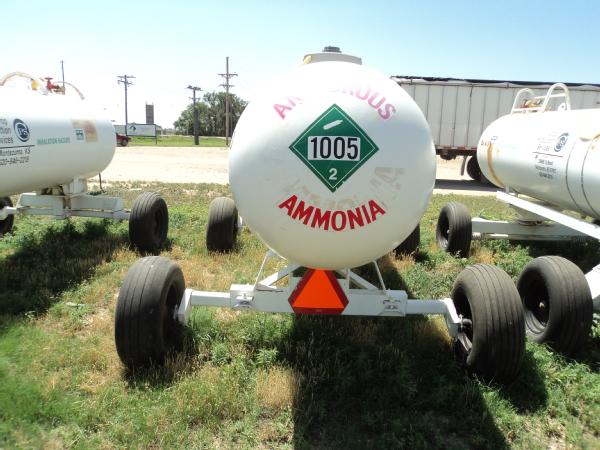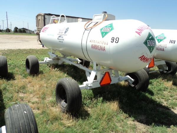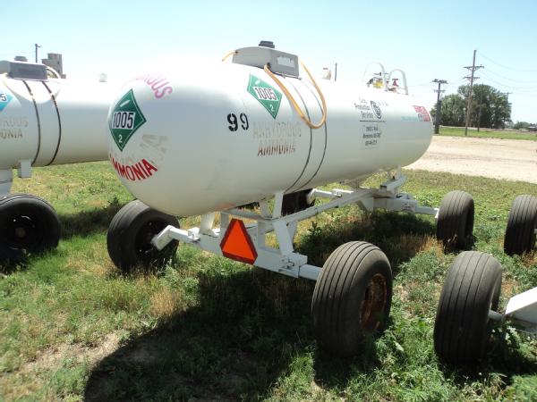 1,000 gallon anhydrous nurse tank (Unit 99), top front fill, 4 wheel running gear, 11L-15 flotation tires, data plate.