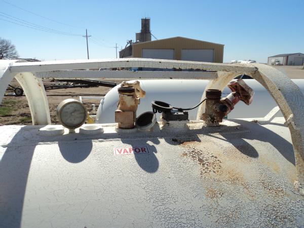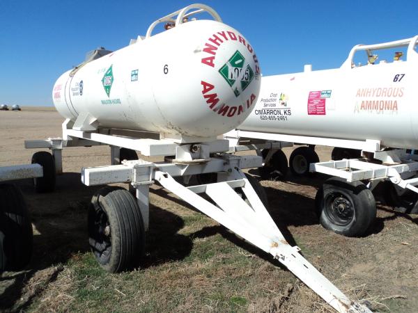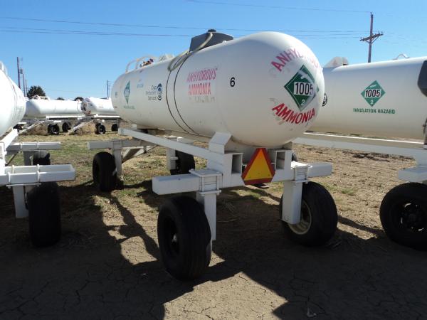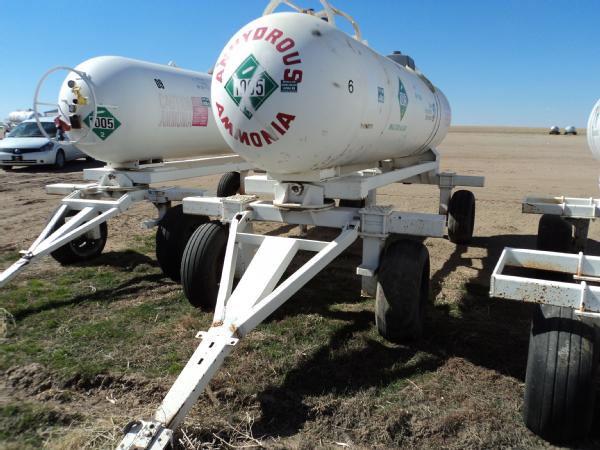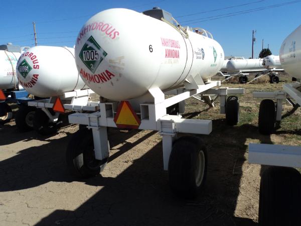 1,000 gallon anhydrous nurse tank (Unit 6), top front fill, 4 wheel running gear, 11L-15 flotation tires, data plate.