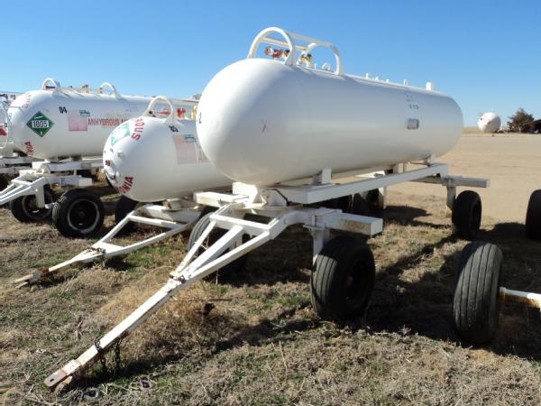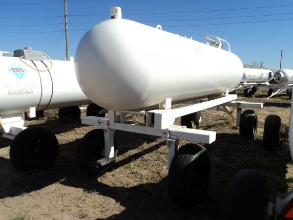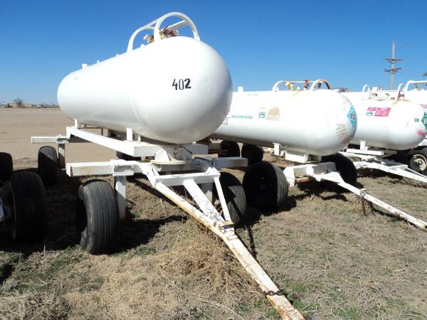 1,000 gallon anhydrous nurse tank (Unit 402), top front fill, 4 wheel running gear, 11L-15 flotation tires, NO data plate.