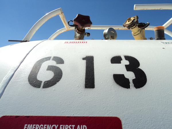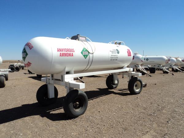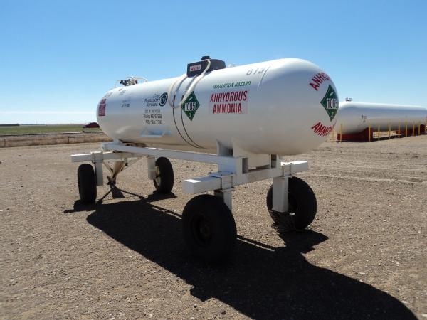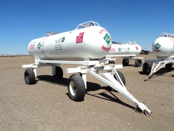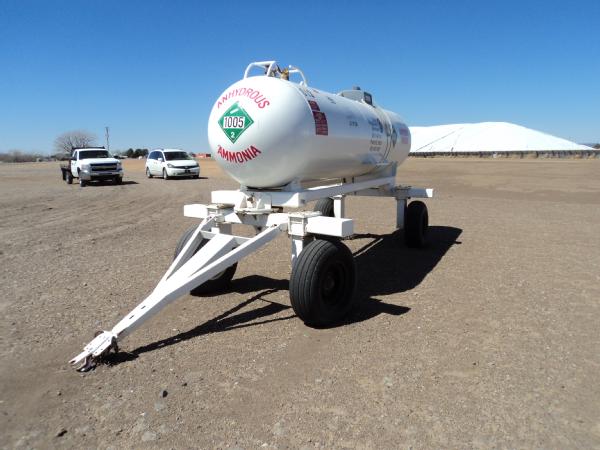 1,000 gallon anhydrous nurse tank (Unit 613), top front fill, 4 wheel running gear, 11L-15 flotation tires, data plate.