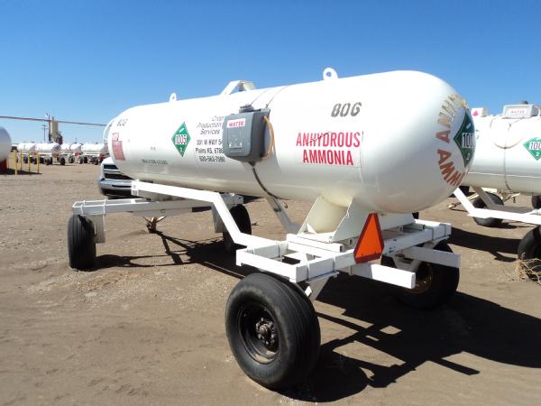 1,000 gallon anhydrous nurse tank (Unit 806), front fill, 4 wheel running gear, 11L-15 flotation tires, data plate.