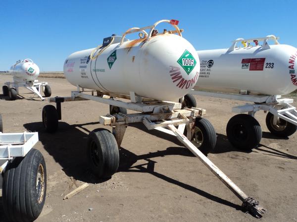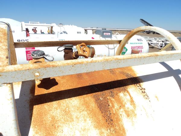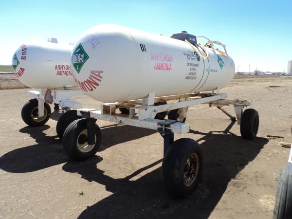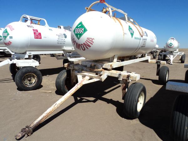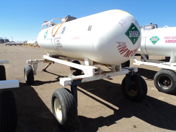 1,000 gallon anhydrous nurse tank (Unit 81), top front fill, 4 wheel running gear, 11L-15 flotation tires, data plate.