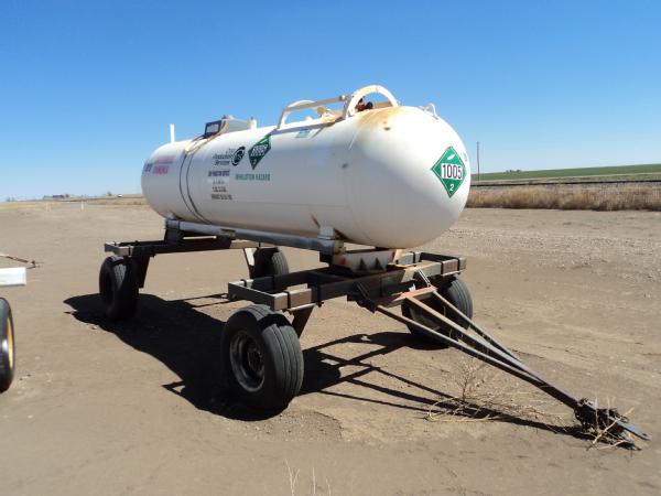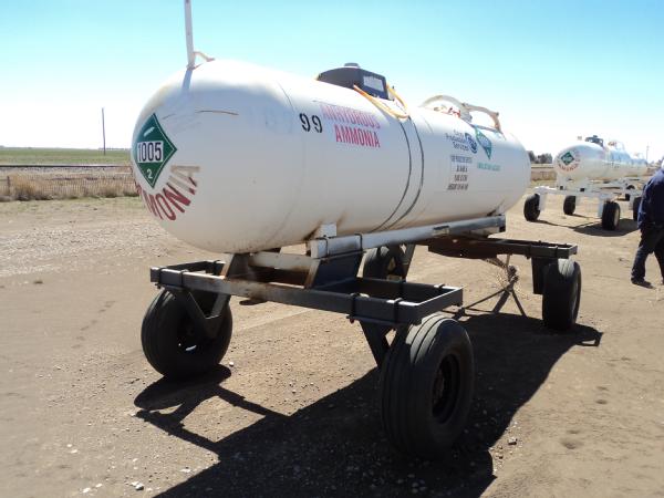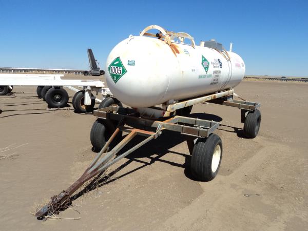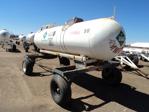 1,000 gallon anhydrous nurse tank (Unit 99), top front fill, 4 wheel running gear, 11L-15 flotation tires, data plate.