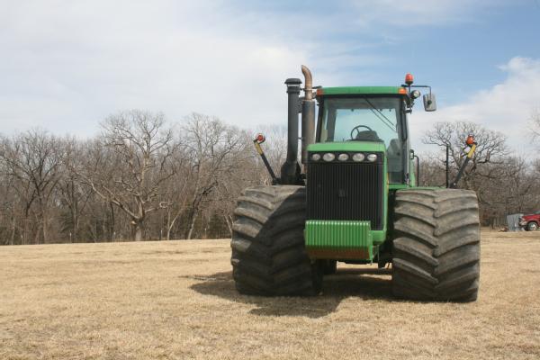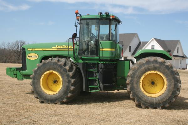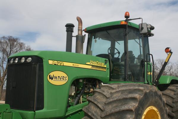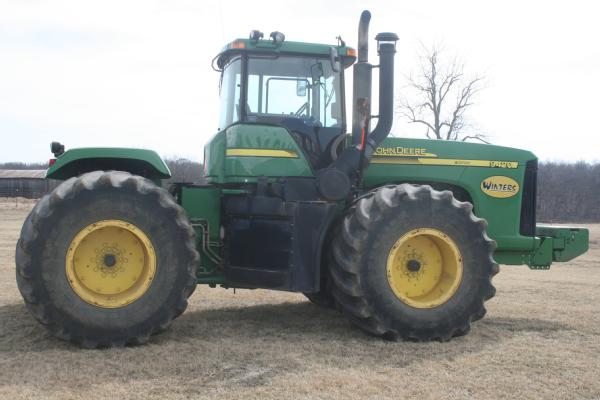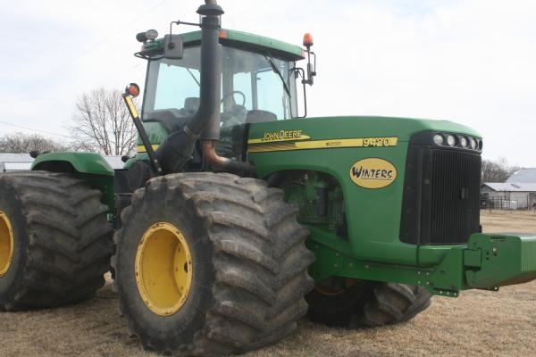2004 John Deere 9420, 4WD, John Deere diesel engine (425HP), 18 speed power shift transmission, heat, air conditioning, Am/Fm radio, air ride seat, buddy seat, four remote hydraulic hookups, hitch, 1250/45B32 tires, shows 2603 hours.