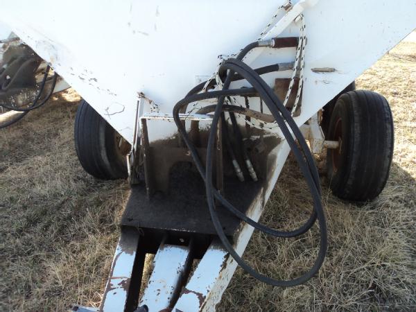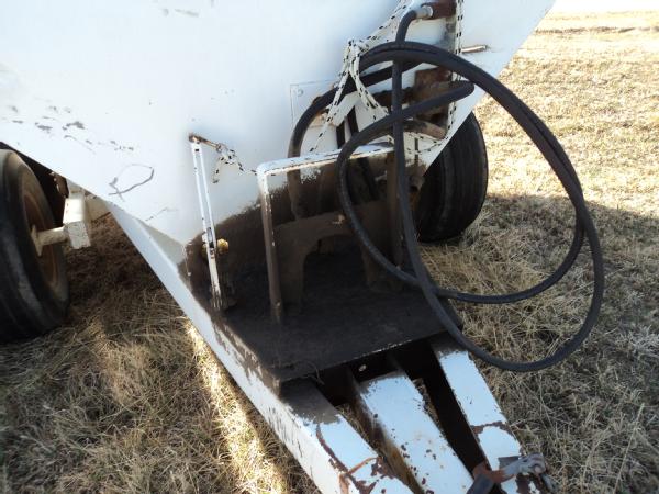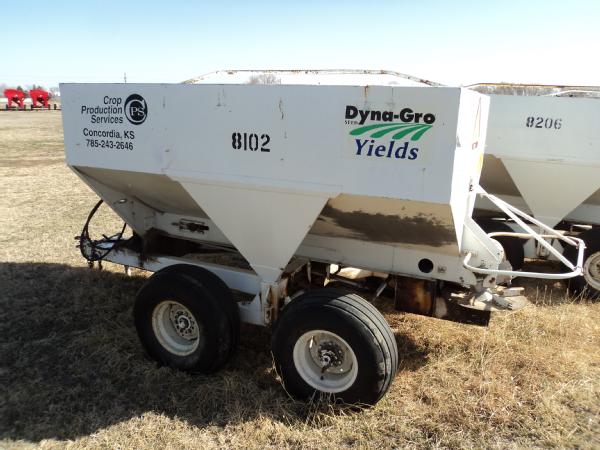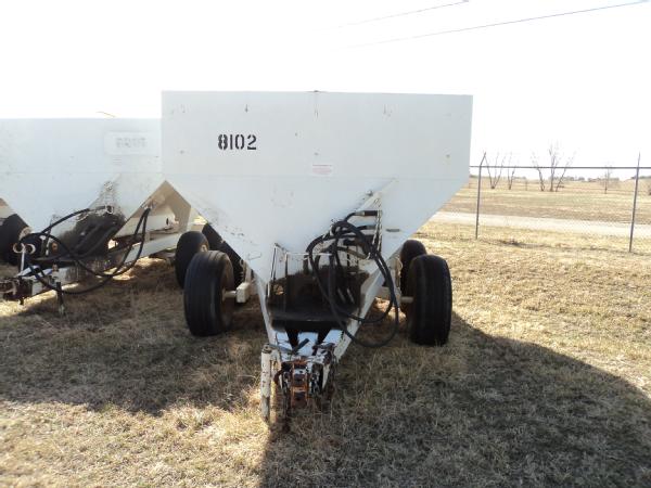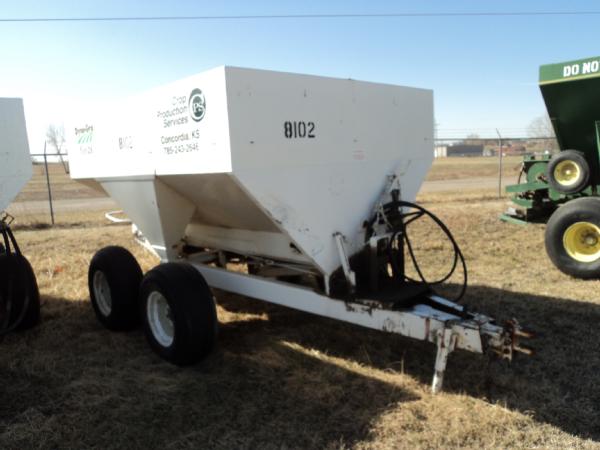 Dempster 5 ton dry spreader (Unit 8102), hydraulic, single spinner, web chain, 11L-15SL tires.