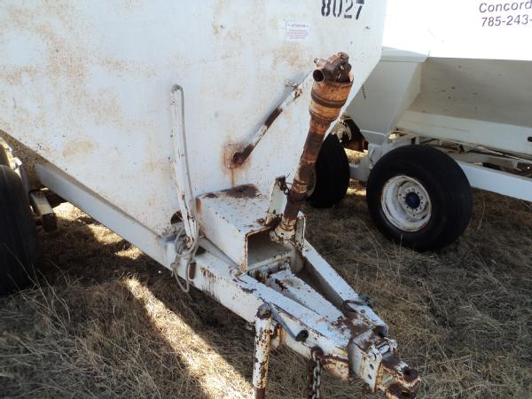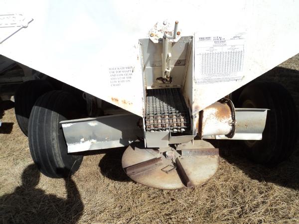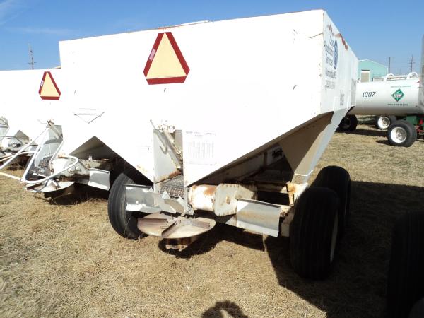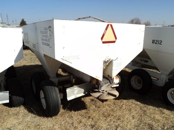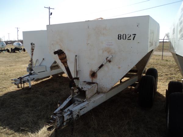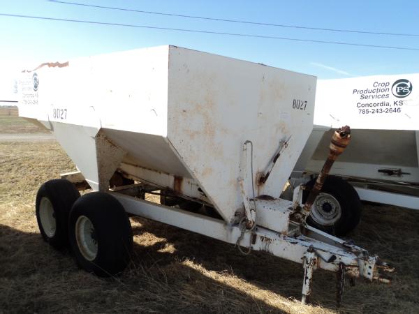Dempster 5 ton dry spreader (Unit 8027), PTO, single spinner, web chain, 11L-15SL tires.