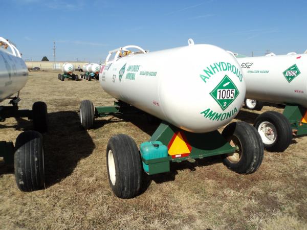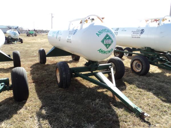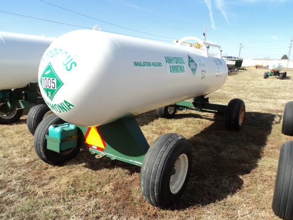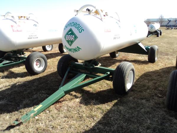 1965 Texas Welding & Mfg. Co. 1,000 gallon anhydrous nurse tank (Unit 57), top front fill, 4 wheel running gear, 11L-15 flotation tires, data plate, Nat'l Board #NB14401