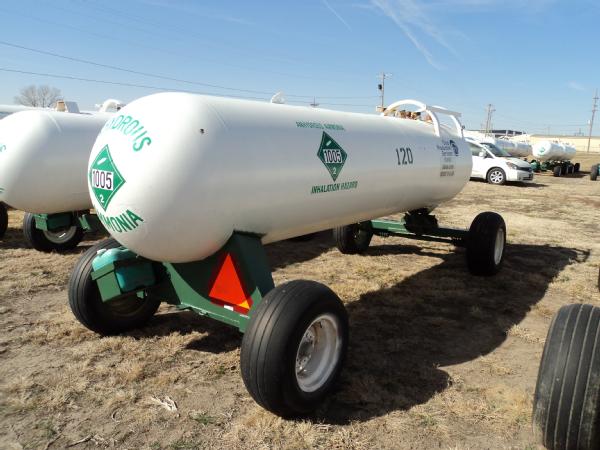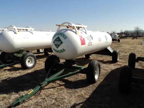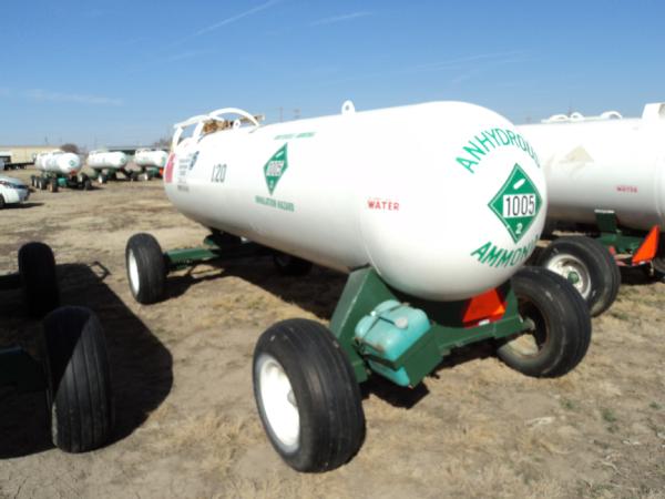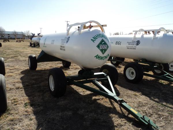 Semco 1,000 gallon anhydrous nurse tank (Unit 120), top front fill, 4 wheel running gear, 11L-15 flotation tires, data plate.