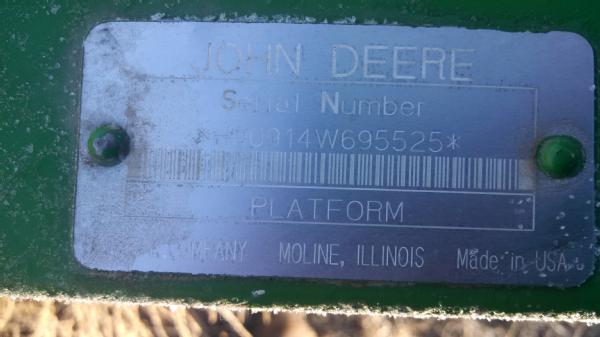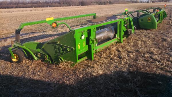 John Deere 914P pickup head, lights, set up for S Series John Deeres, field ready.