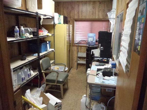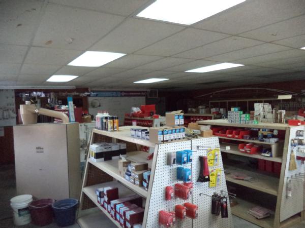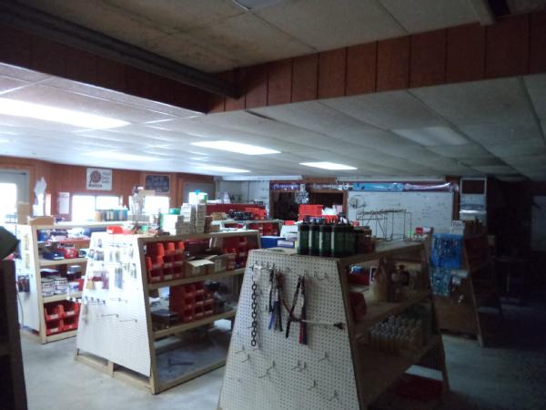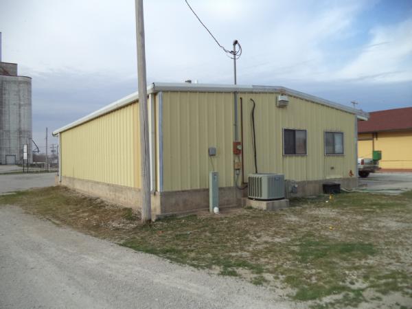 30' x 45' steel structured and metal clad building, raised level concrete floor, two covered concrete platforms, insulated with newer forced air furnace and central air conditioning, florescent lighting, large retail area with counter, scale operation area, two private offices, restroom, storage room roughed in for second bathroom.