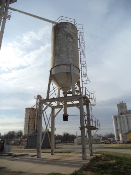 2,500 bushel mild steel smooth wall overhead load out hopper bin on steel super structure.