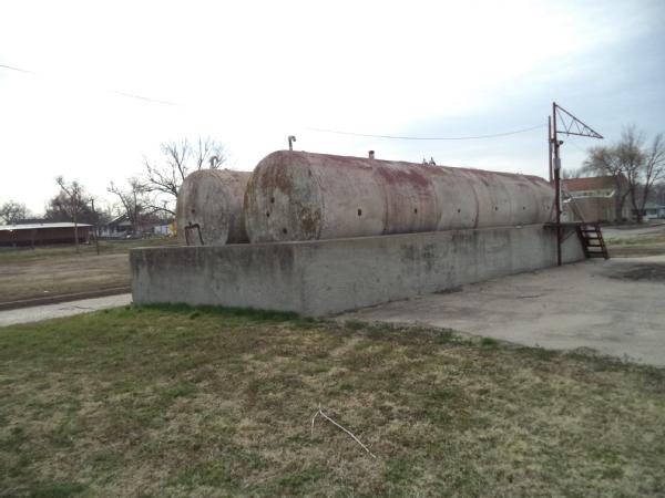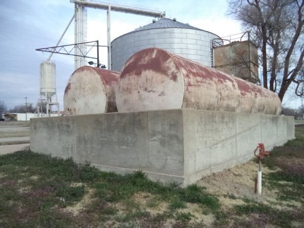 20' x 40' concrete containment dike with two steel tanks on concrete piers, tanks are no longer in use, piers can be removed.