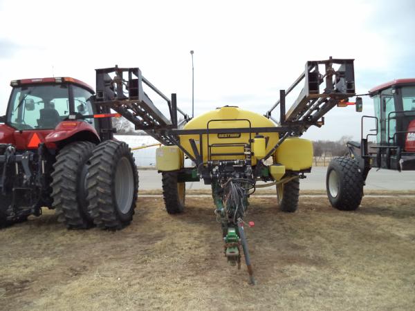 Bestway 1600 pull type sprayer, 1,600 gallon poly tank, 90' boom, poly foam marker tank, poly injection tanks, Raven 450 controller, row crop tires