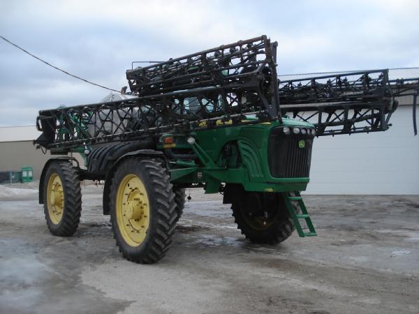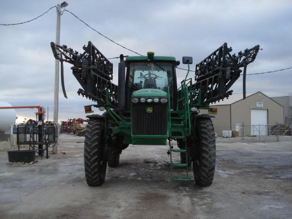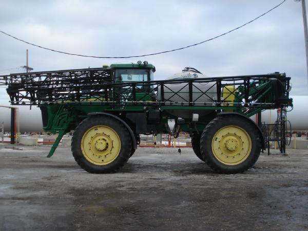 2007 John Deere 4920 (Unit 42734), diesel engine, hydrostatic transmission, air conditioning, heat, Am/Fm CD stereo, 1200 gallon stainless steel liquid system, 120' boom, foam marker, poly foam marker tank, stainless steel chemical inductor, 380/105R50 tires, StarFire iTC, GreenStar monitor, Brown Box monitor, shows 4169.5 hours.