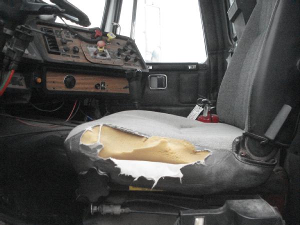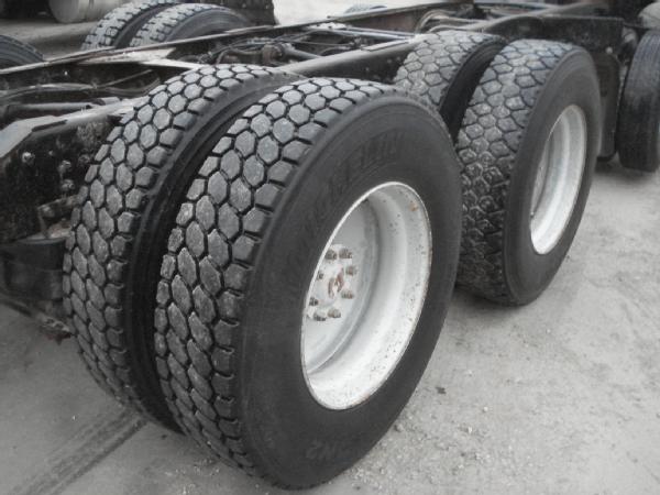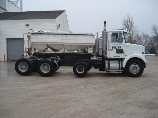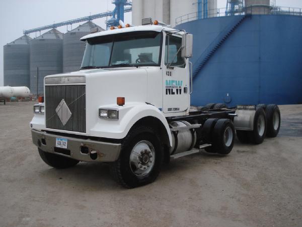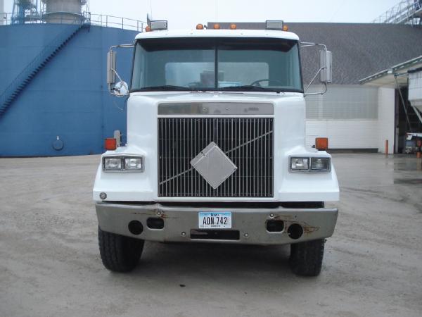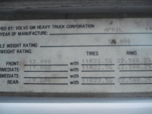 1989 Volvo (Unit 430), Cummins LTA 10 diesel engine, 9 speed transmission, tandem axle, heat, full screw, cheater axle, air ride suspension, 10R17.5 cheater tires, 11R22.5 rear tires, 315/80R22.5 front tires, shows 467,414 miles.