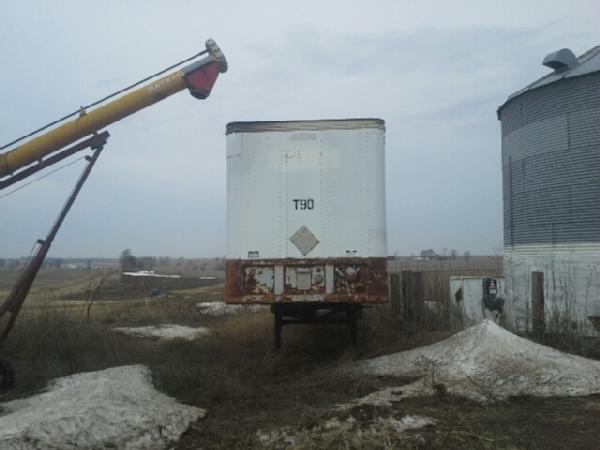 1984 Fruehauf van trailer (Unit 101T), 46' x 102", spring ride suspension, tandem axle, 22.5 tires on Dayton wheels, tires 40%.