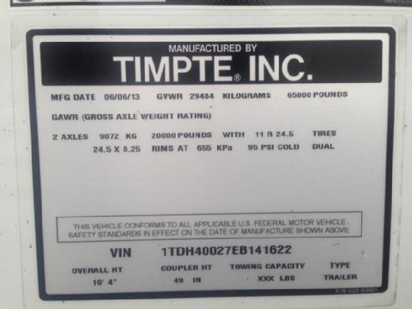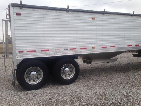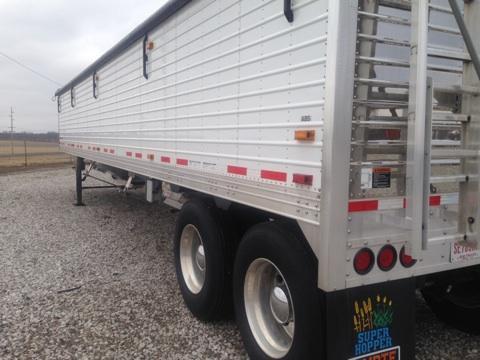 2014 Timpte super hopper 40' aluminum grain trailer, ag hoppers, air ride suspension, roll over tarp, tandem axle, 11R22.5 tires, aluminum outside rims.