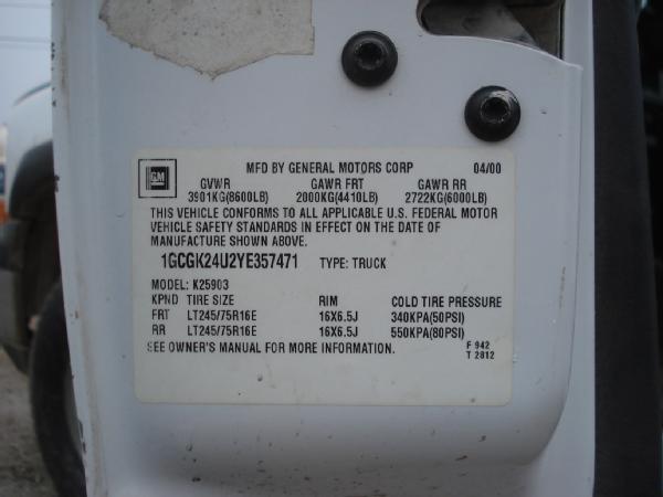 2000 Chevrolet 2500 Silverado 4x4 (Unit 111), gas engine, automatic transmission, air conditioning, heat, Am/Fm radio, LT245/75R16 tires, shows 119,643 miles.