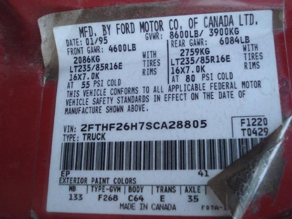 1995 Ford F-250XL 4x4 (Unit 584), 5.8 EFI gas engine, automatic transmission, air conditioning, heat, Am/Fm radio, running boards.
