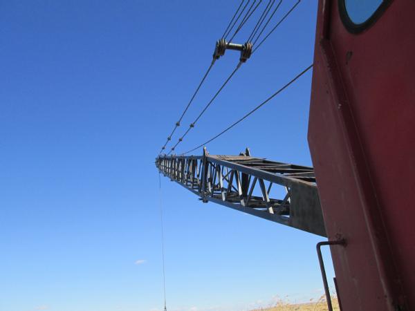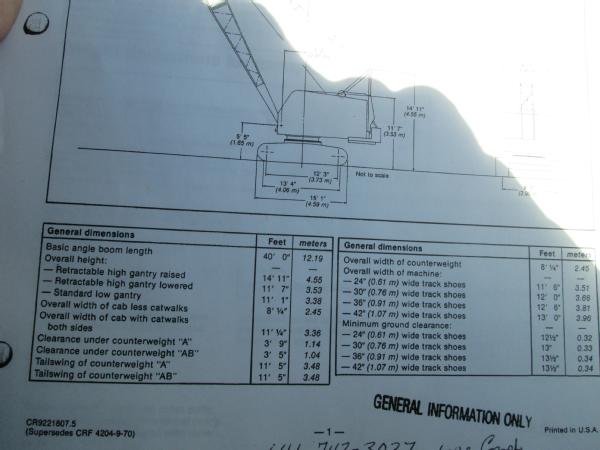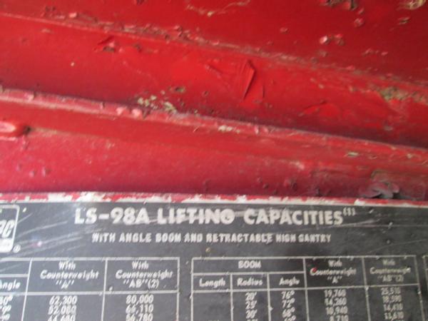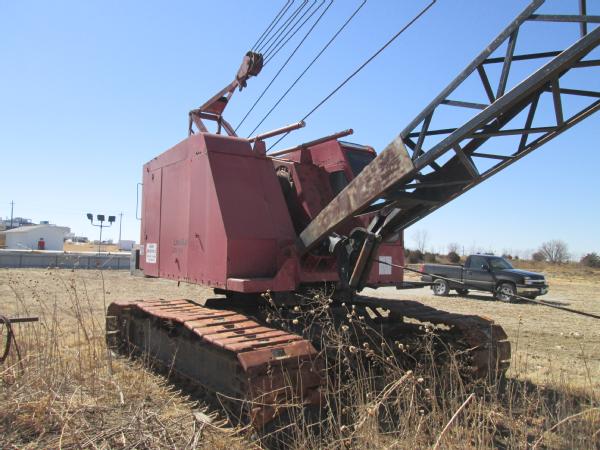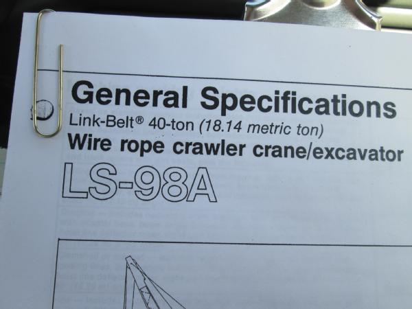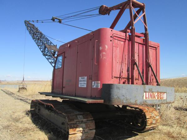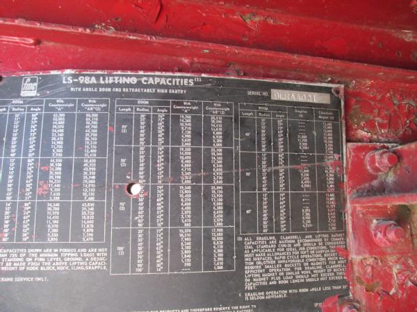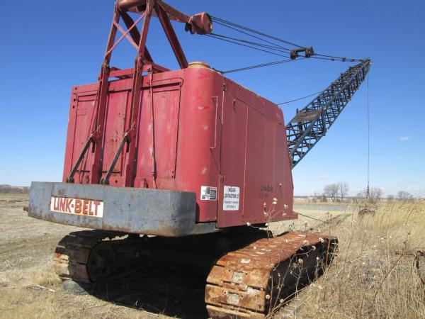 Link-Belt LS 98A crane, Cat diesel engine, speed-o-matic hydraulic controls, 40 ton, 80' boom, 1 yard drag line bucket, power down live boom.