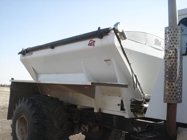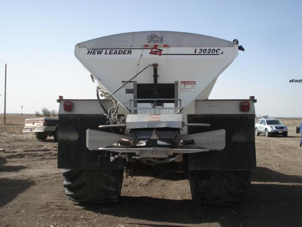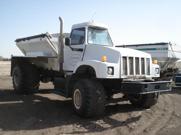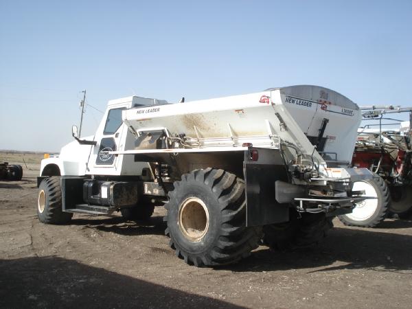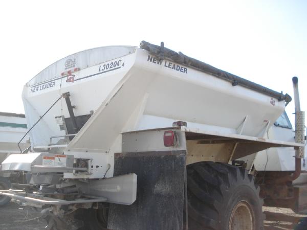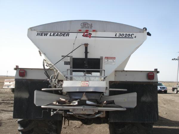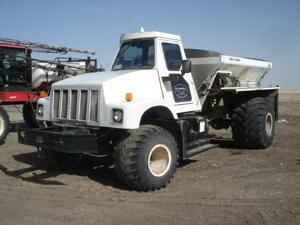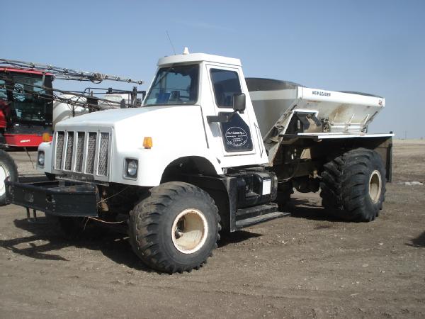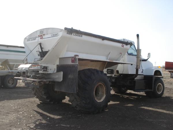 1996 IHC Center Ride, Cat C-10 diesel engine, 10 speed transmission, air conditioning, heat, Am/Fm radio, 2005 New Leader L3020 G4 stainless steel lime/fertilizer dry spreader box ( S/N 122526), all hydraulic, electric roll tarp, New Leader SP.6 monitor, 5366 hours, shows 30,507 miles.