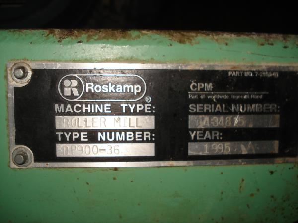 1995 Roskamp model DP900-36 roller mill, 50 hp electric motor.
