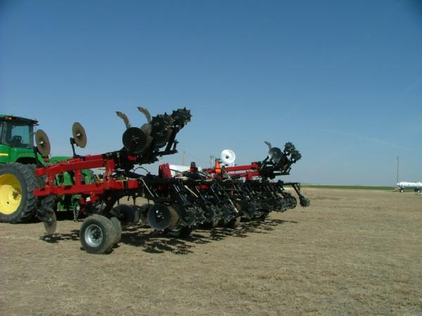 2007 DMI 5310 16 row strip till bar, 30" spacing, coulters, double disc sealers, walking tandems, hydraulic wings, Raven Super cooler.