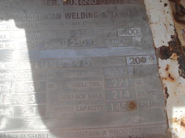 2009 American Welding & Tank 1450 gallon anhydrous nurse tank (Unit 3), top front fill, water tanks, Duo Lift extra wide running gear, 14L-16.1SL flotation tires, Nat'l Board #6NU000940.