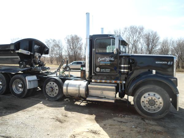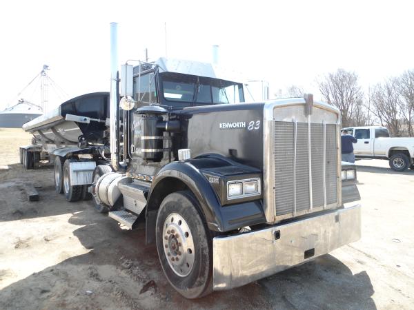 1983 Kenworth W900 day cab conventional, Cat diesel engine 425HP (10,000 miles on in-frame major overhaul with paperwork), 13 speed transmission, heat, air conditioning, Am/Fm radio, engine brake, wet kit, full screw, tandem axle with 3rd axle, air ride suspension.