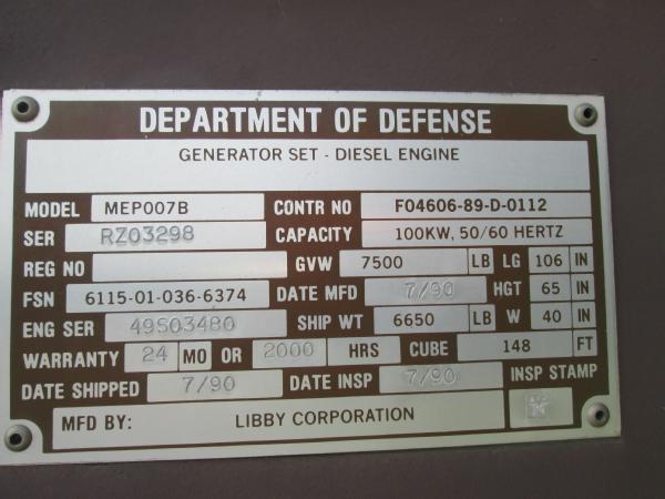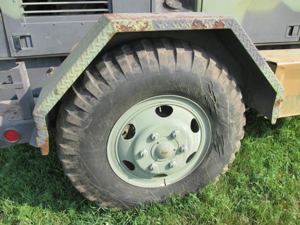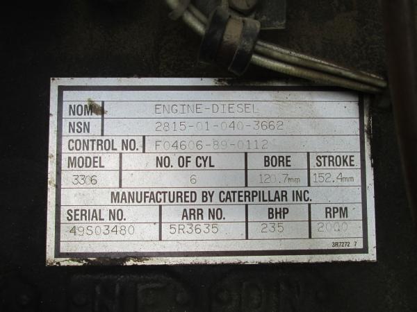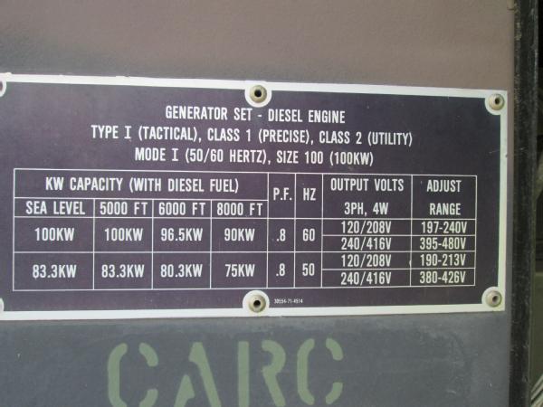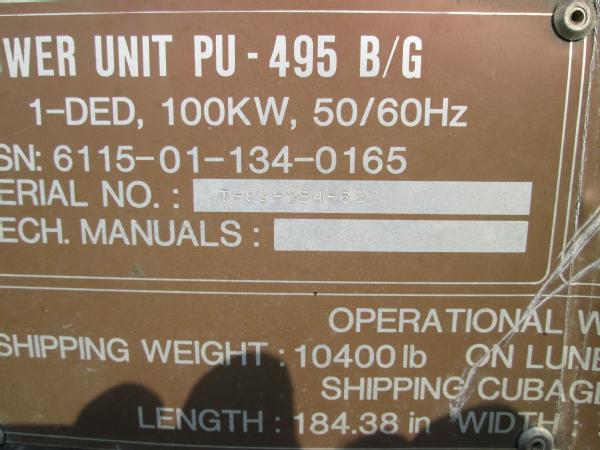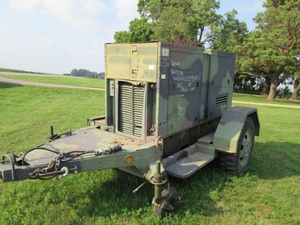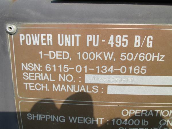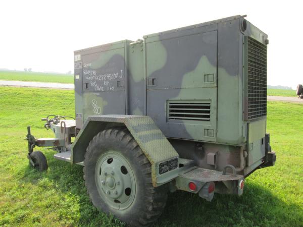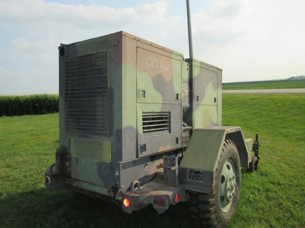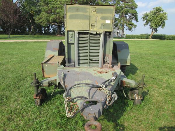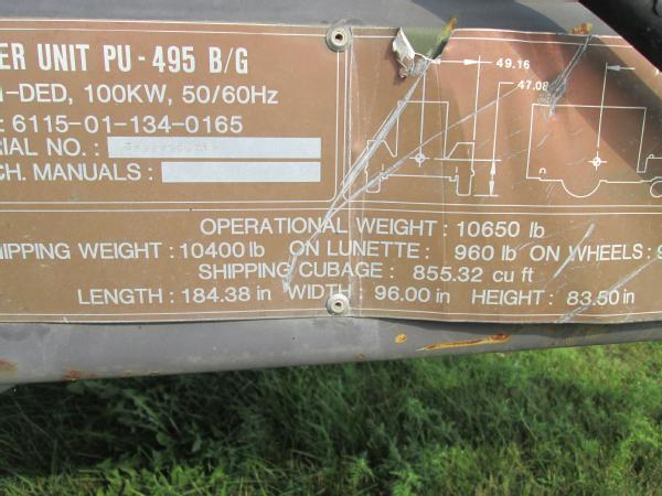 Military power unit Gen set, Model PU 495 B/G, 100KW, 3306 Cat diesel engine, single axle gear, 11.00-20 tires, front dolly wheels, shows 584 hours, speed switch is gone has been by passed for easier operation, NEW batteries, runs great has been used on irrigation system.
