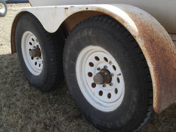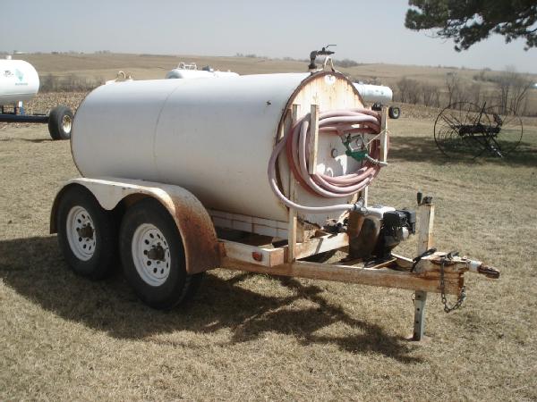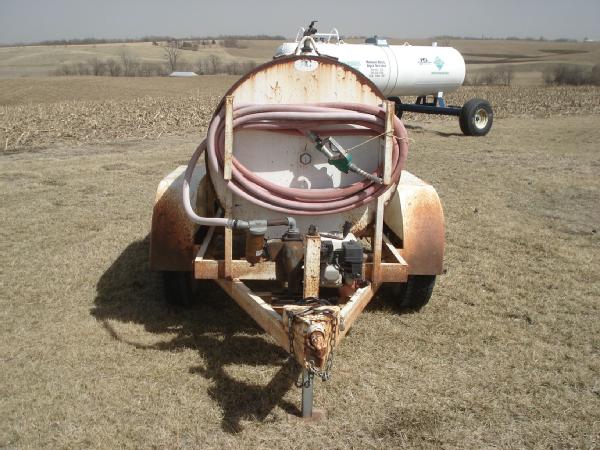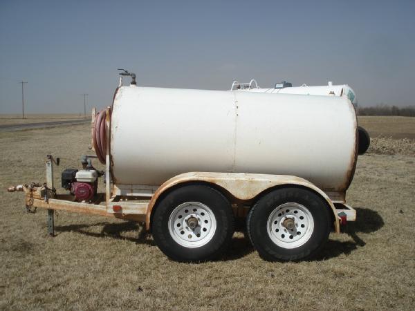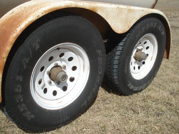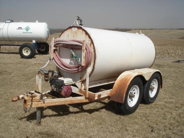 Tandem axle fuel trailer, Honda 5.5 hp gas motor, Banjo pump, fuel hose, LT235/85R16 tires.