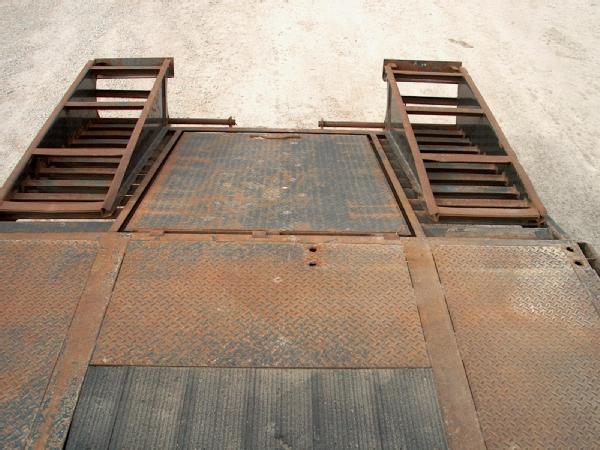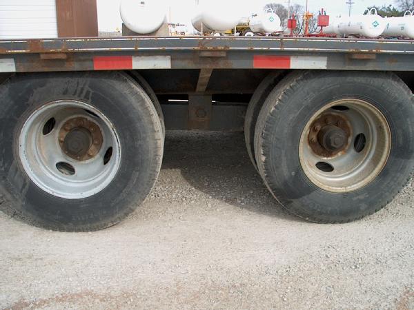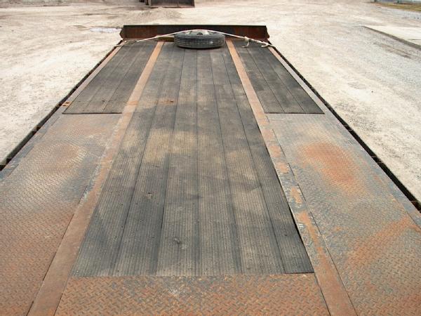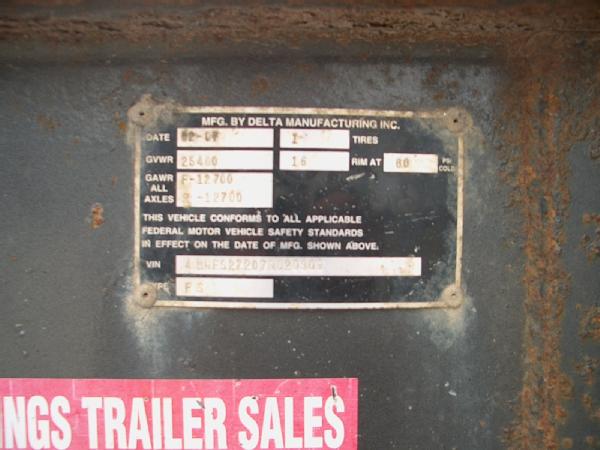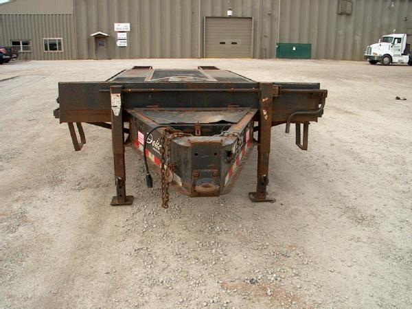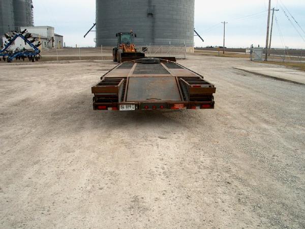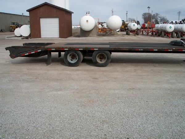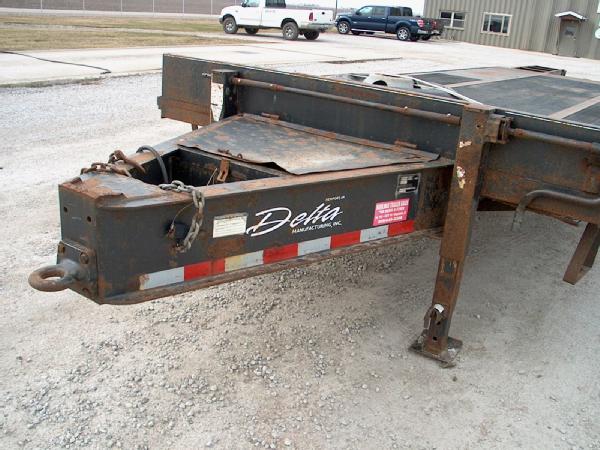 2007 Delta flatbed trailer, 22' deck, 5' dove tail, anti-skid floor, pintle hitch, electric brakes, tandem axle, dual wheels, ramps, 7.50R16 LT tires, spare tire, GVMR 25,400 lbs.