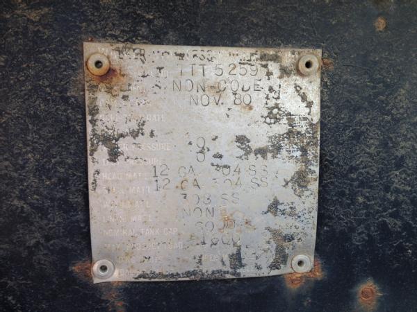 1980 Walker 6,000 gallon stainless steel liquid transport trailer, tandem axle, 11R22.5 tires on Dayton rims.