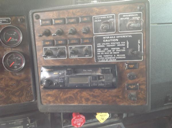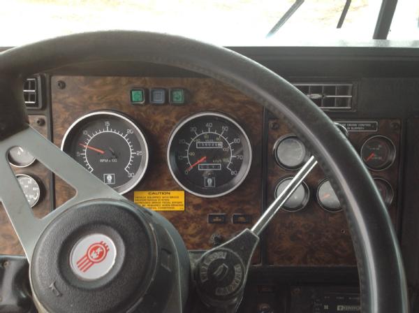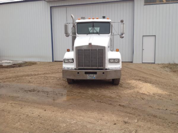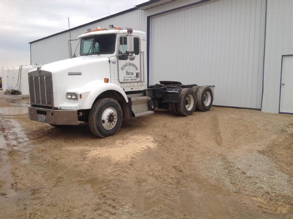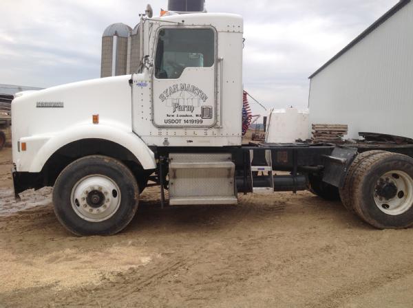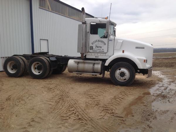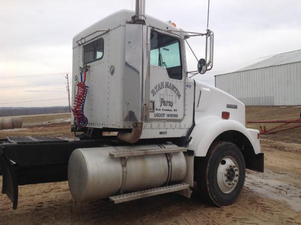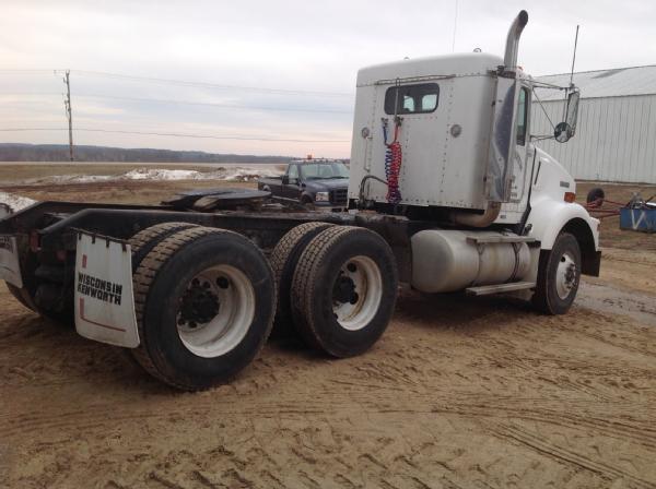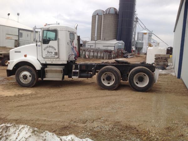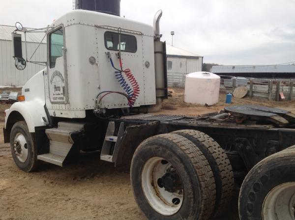 1995 Kenworth T800 day cab, Cat diesel engine, Eaton Fuller 9 speed transmission, heat, air conditioning, Am/Fm radio, tandem axle, full screw, 5th wheel plate, air ride suspension, 204" wheel base, 100 gallon aluminum fuel tank, tires 85%,steel fronts, steel rears.