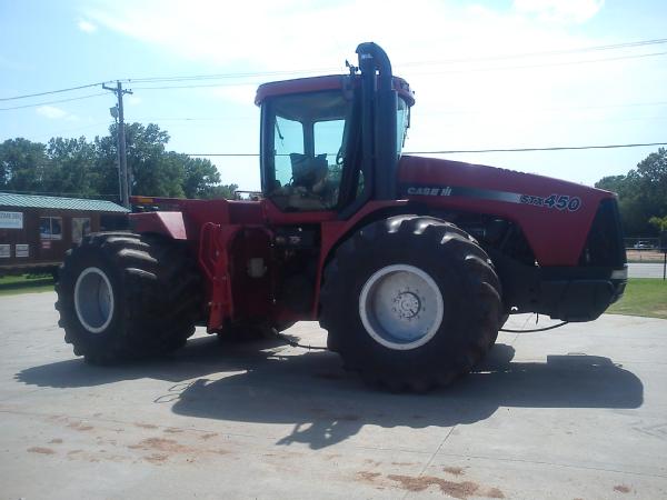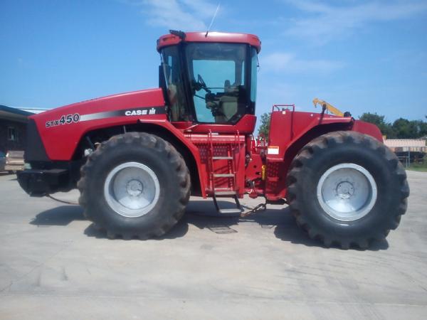 CaseIH STX 450 4x4 articulated utility tractor, EROPS, Cummins QSX15 turbo charged aftercooled 6 cylinder diesel engine (450HP, 14.9L, 912 ci), transmission 16 forward 2 reverse, compound planetary drives, hydrostatic power steering, integrated hydraulic wet disc brakes, 40 GPM hydraulics, pressure flow compensated, shows 3134 hours.