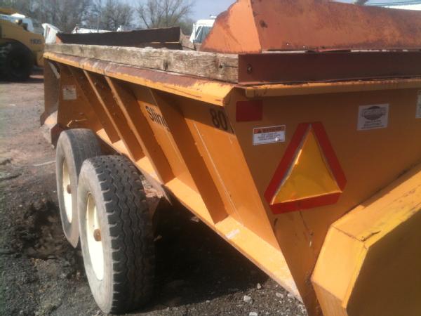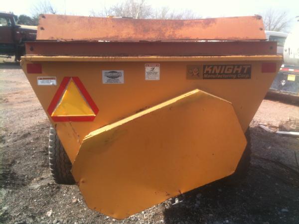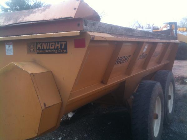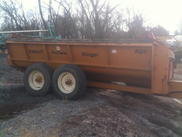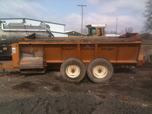 Knight ProTwin Slinger Model 8018 manure spreader, tandem axle, twin augers, side delivery, hydraulic discharge door.