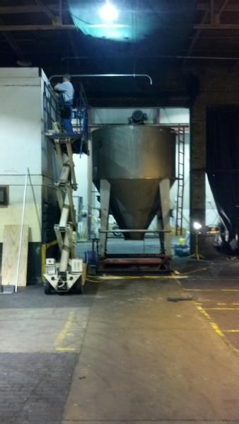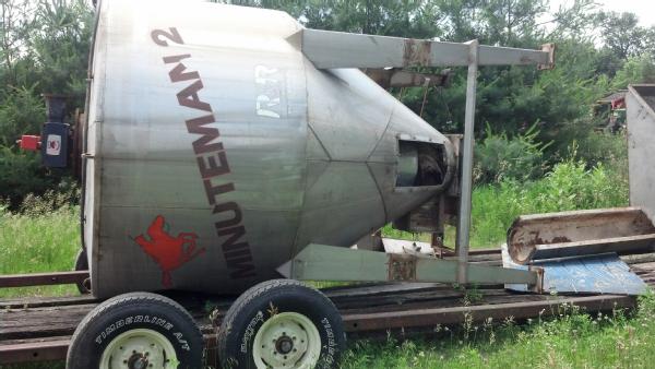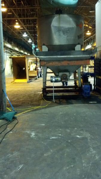 MinuteMan 2 stainless steel 10 ton vertical dry blender, stainless steel under frame and scale, 25HP 220/3 phase drive motor, 38' x 24" stainless steel loadout conveyor, 20HP 220/3 phase motor, digital readout, blender control panel, Minuteman 2 blend system has a low inload height of 5'9" for easy filling.