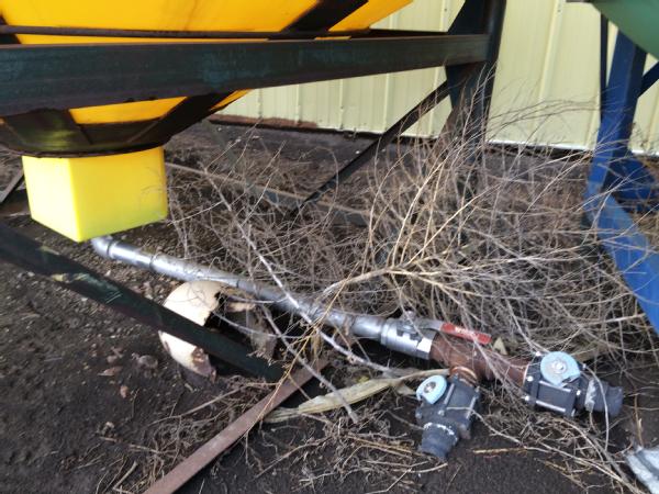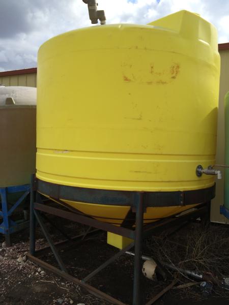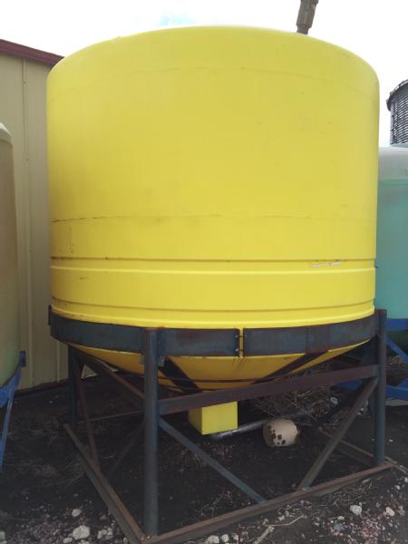 3000 gallon poly cone bottom tank with stand, 2" stainless valve.