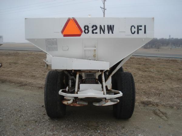 Willmar Dry Spreader (ID# PZ-095), 6 ton stainless steel dry spreader, double spinner, PTO, tandem axle, 385/65R22.5 front tires, (Unit# 82NW).
