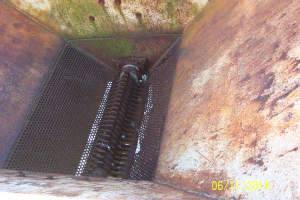 Fertilizer Conditioner/Clod Crusher (ID# NP-049), mild steel hopper, auger in bottom in descent shape and has stainless cover with holes to screen out clods.