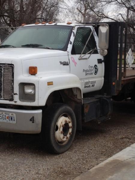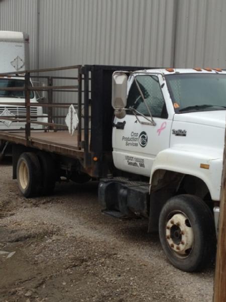1994 GMC C6000 TopKick Truck (ID# NP-052), Cat diesel engine (185HP), 6 speed transmission, heat, air conditioning, Am/Fm radio, cruise control, single axle, 16' flatbed with side rails, shows 165,512 miles, CPS Unit# 04883.
