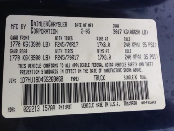 2005 Dodge Ram 1500 SLT Pickup (ID# NP-053), 4x4, crew cab, 5.7L Hemi V8 gas engine, automatic transmission, heat, air conditioning, Am/Fm CD radio, power windows and locks, cruise control, bed liner, tow package, bed rails, shows 108,713 miles, CPS Unit# 11021.